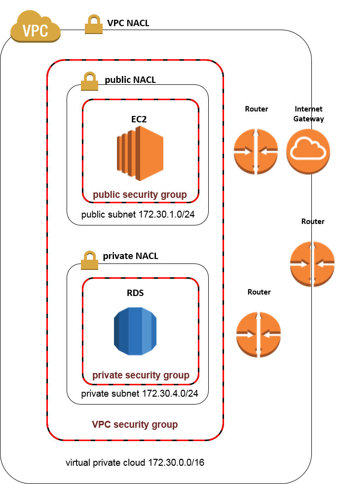您在安全安全白皮书第39页上引用的表显示了不再提供的旧服务(EC2-Classc和VPN经典)与当前默认服务(EC2-VPC)之间的区别。在当前格式中,您的安全组在实例级别应用于所有附加实例。您可以在VPC级别使用路由表和网络访问控制列表来增强安全性。