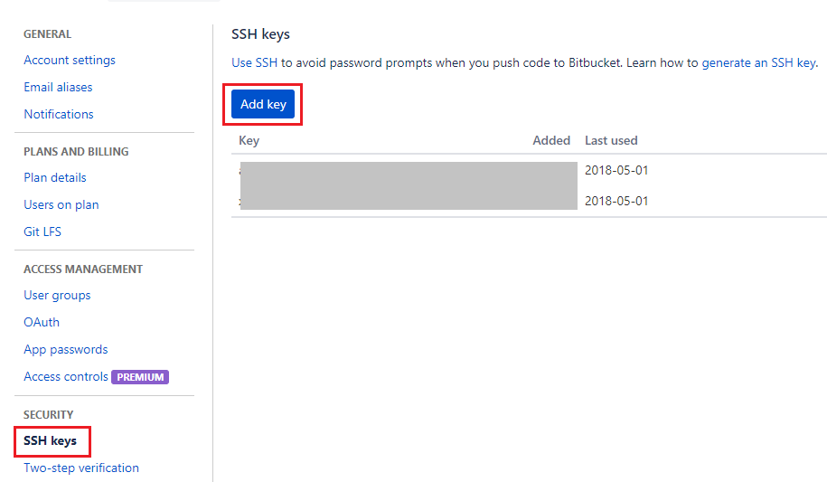 rm -r .ssh(我只是使用一个),然后生成一个新的,或者使用Sourcetree或终端。然后,我从Bitbucket帐户中删除机器的旧密钥,并粘贴到新密钥中。
