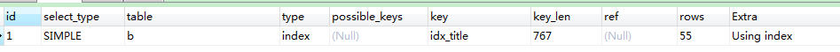 | id | select_type | table | type | possible_keys | key | key_len | ref | rows | Extra |
