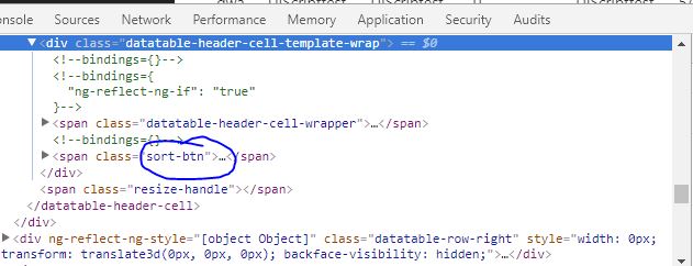 我正在使用一个在我的角度组件中呈现表格数据(下图)。除了无法从'Action‘标题列中移除排序函数之外,一切正常工作。在检查它时,我可以看到它在span class = "datatable-header-cell-wrapper“下使用span class =”sort“。知道如何删除排序函数吗?我增加了以下代码: