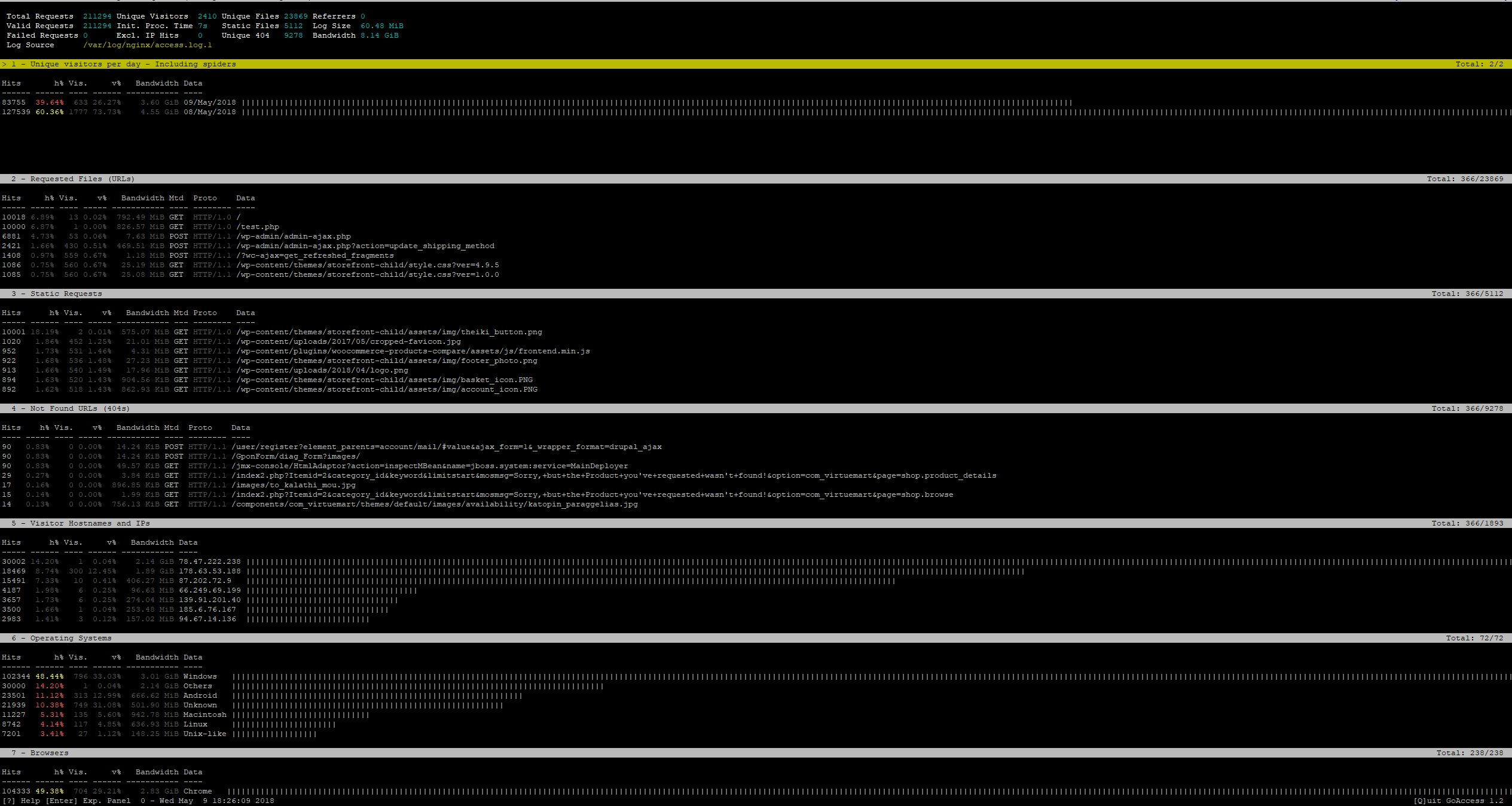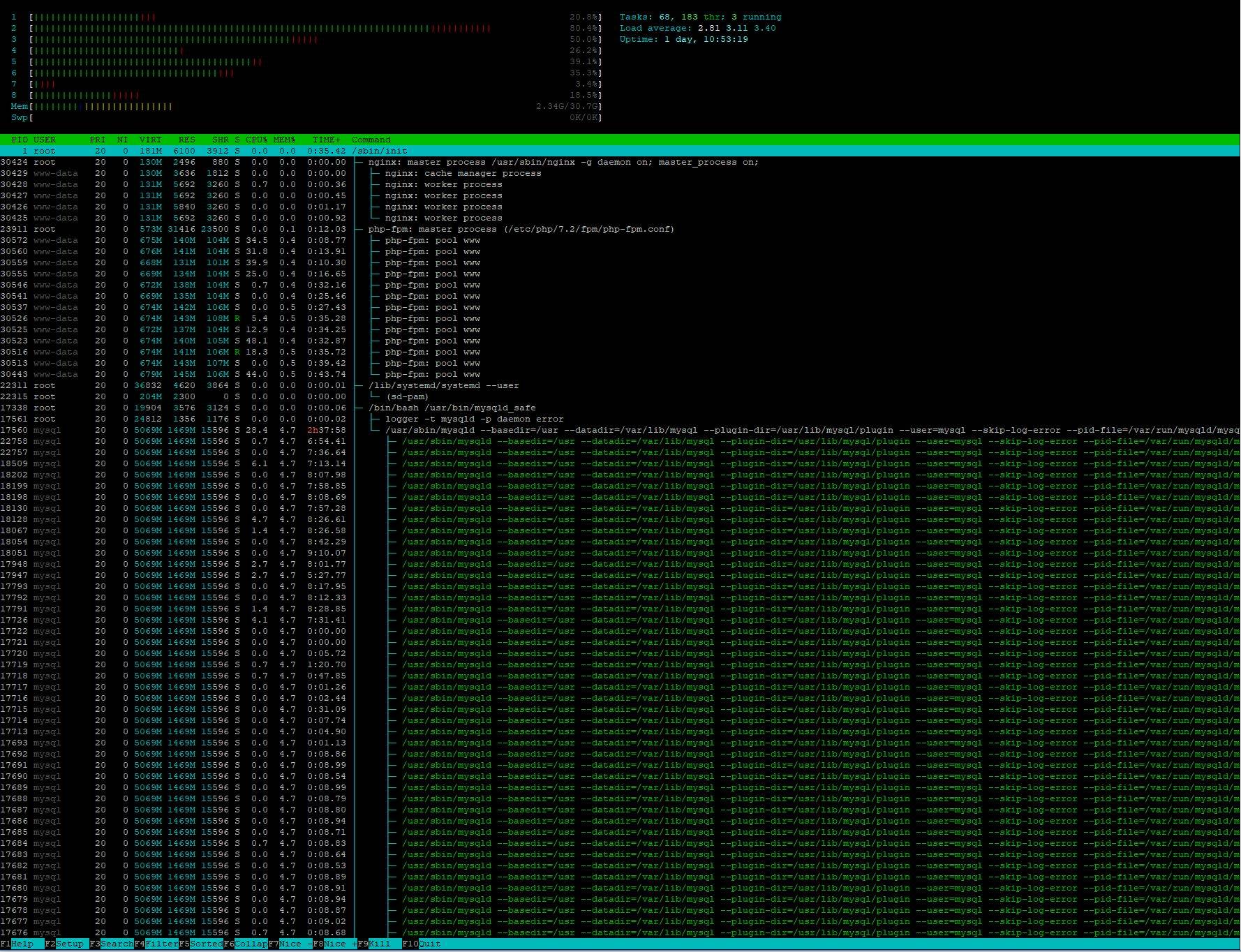 RAM:仅使用来自32 GB (见htop监视器映像) nginx错误日志的2GB的nginx错误日志,还有一些浏览器控制台报告,无法加载admin-ajax.php错误日志,在一天内收到20 GB的反推荐错误警告/错误。