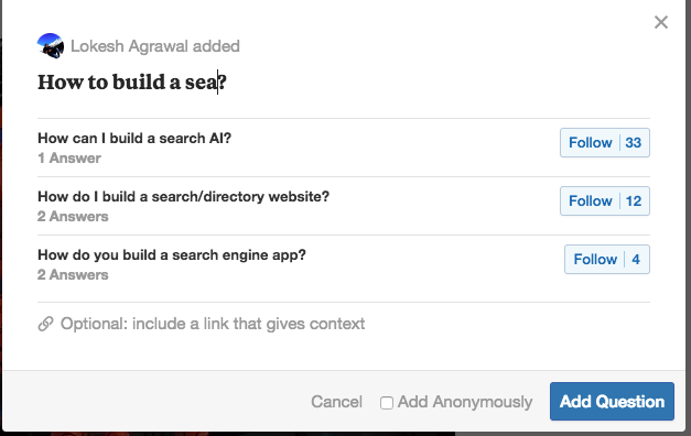 我正在创建一个类似quora/stackoverflow的web应用程序,允许用户在问题库上执行CRUD操作(问题库非常小,每个问题最多有5个答案)和搜索。我如何建立一个自由流动搜索或自动建议功能的问题库?