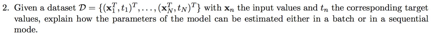 我认为这个问题不是要求你展示两种方法(批处理和顺序)来估计模型的参数,而是解释--无论是在批处理模式还是顺序模式--这样的估计是如何工作的。