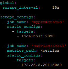 我想问题是关于顾问的。您可以尝试检查cadvisor度量端点:http://172.28.5.201:8080/metrics,以确保cadvisor返回度量示例:
