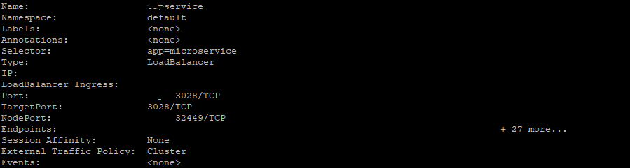 当破坏kubectl describe service MyService命令时,可以获得我的kubernetes服务的详细信息,如下所示:
