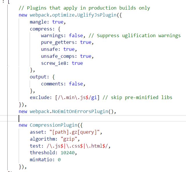 我使用webpack 2.5.1,我想缩小我的文件大小,因为我的硬件不支持超过7,800千字节的文件。我将生产模式和uglify的主-client.js减少到2.63mb,但我想使用gzip,我不知道如何使用.