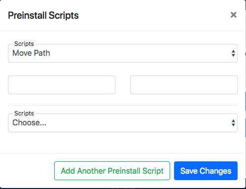 $(preInstallWrapper).append('<hr><div class="row"><div class="form-group input-group"><div class="col"> <label for="preinstallscripts" class="has-float-label"> <select class="form-control spacing" name="preinstallscripts" id="preinstallscripts" required><option value="">Choose...</option><option>Move Path</option><option>Remove Path</option><option>Link Path</option><option>CHMOD</option><option>CHMOD -R</option><option>CHOWN</option><option>CHOWN Group</option><option>Add Source</option><option>Remove Source</option><option>Run Script</option> </select> <span>Scripts</span> </label></div></div></div><div id="preinstall-inputs2"></div>'); //add input box