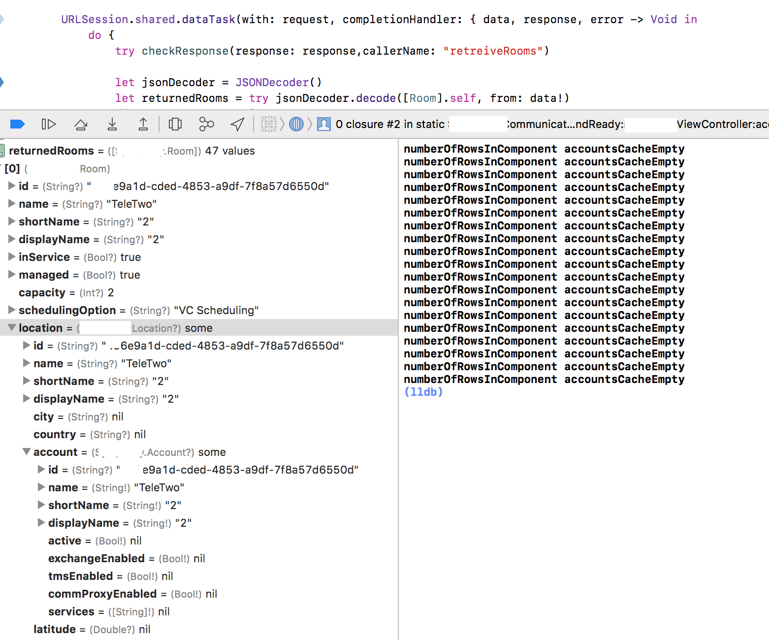 对象:房间(id: Optional("506e9a1d-cded-4853-a9df-7f8a57d6550d"),名称:可选(“TeleTwo”),shortName:可选(“2”),displayName:可选(“2”),inService:可选(真),托管:可选(真),容量:可选(2),schedulingOption:可选(“VC调度”),位置(id: Optional("50b07258-2668-416e-aef4-a8a48e9e7389"),名称:可选(“远程检查”),shortName:可选(“远程检查”),可选(“远程测试”),城市:可选(“纳什”),国家:可选(“美国”),帐户:可选(id: Optional("509788c6-197f-40f1-a7f7-274a23af9062"),名称: Swift.ImplicitlyUnwrappedOptional.some("Development"),shortName: Swift.ImplicitlyUnwrappedOptional.some("Dev"),displayName: Swift.ImplicitlyUnwrappedOptional.some("Dev"),active: Swift.ImplicitlyUnwrappedOptional.some(真),exchangeEnabled: Swift.ImplicitlyUnwrappedOptional.some(false),( Swift.ImplicitlyUnwrappedOptional.some(false),commProxyEnabled: Swift.ImplicitlyUnwrappedOptional.some(真),服务: Swift.ImplicitlyUnwrappedOptional>.some("Premier","VMR_Pool_Static",“VMR”),纬度:可选(45.786368000000003),经度:可选(-78.505821999999995),活动:可选(假),摘要:零),摘要:可选(totalDevices: 2),要员:可选(假)