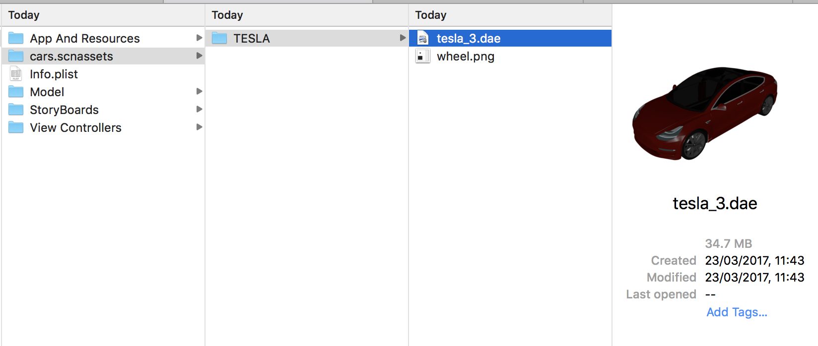 因此,我购买了一辆车的3D模型,显示在我的ARKIT app.The文件夹中,由不同的模型格式和一个图像组成。