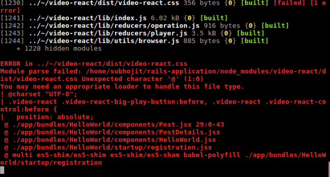 我在我的项目中使用了react视频播放器组件&在页面中使用它时,它向我显示了以下错误。我已经附上了截图。