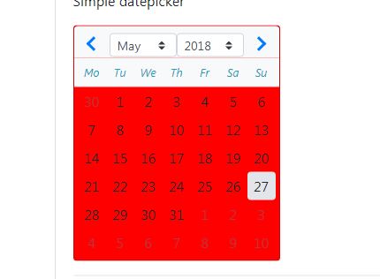 如何编辑原始的引导角日期选择器样式表,根据我的愿望,这里是链接https://ng-bootstrap.github.io/#/components/datepicker/examples#basic,我需要在我的文件中编辑这个日期选择器的颜色。