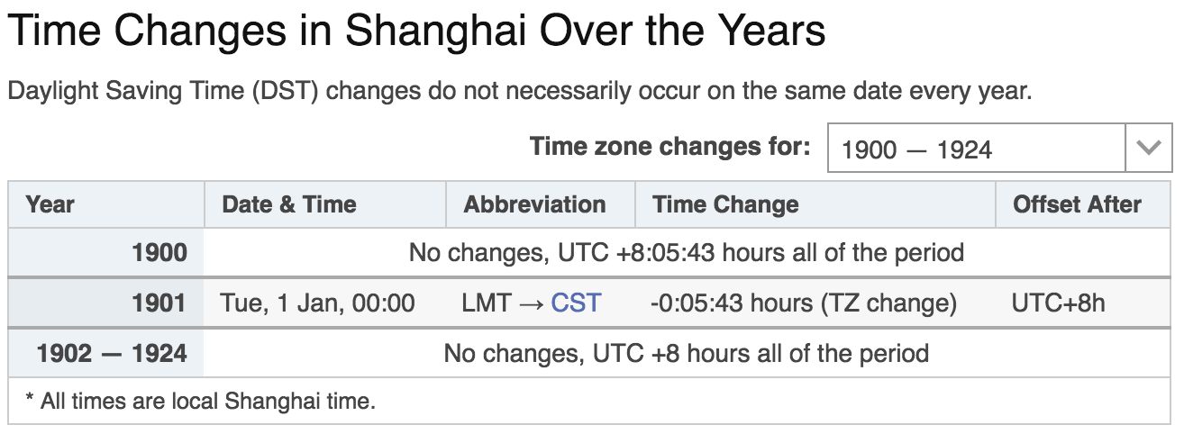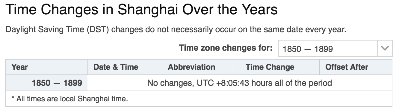 看看本网站,在上海,从< 1800到1900年,他们有一个GMT+0805。