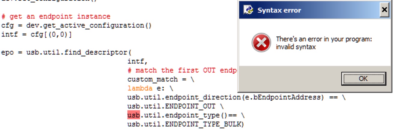 usb.util.endpoint_direction(e.bEndpointAddress) ==\