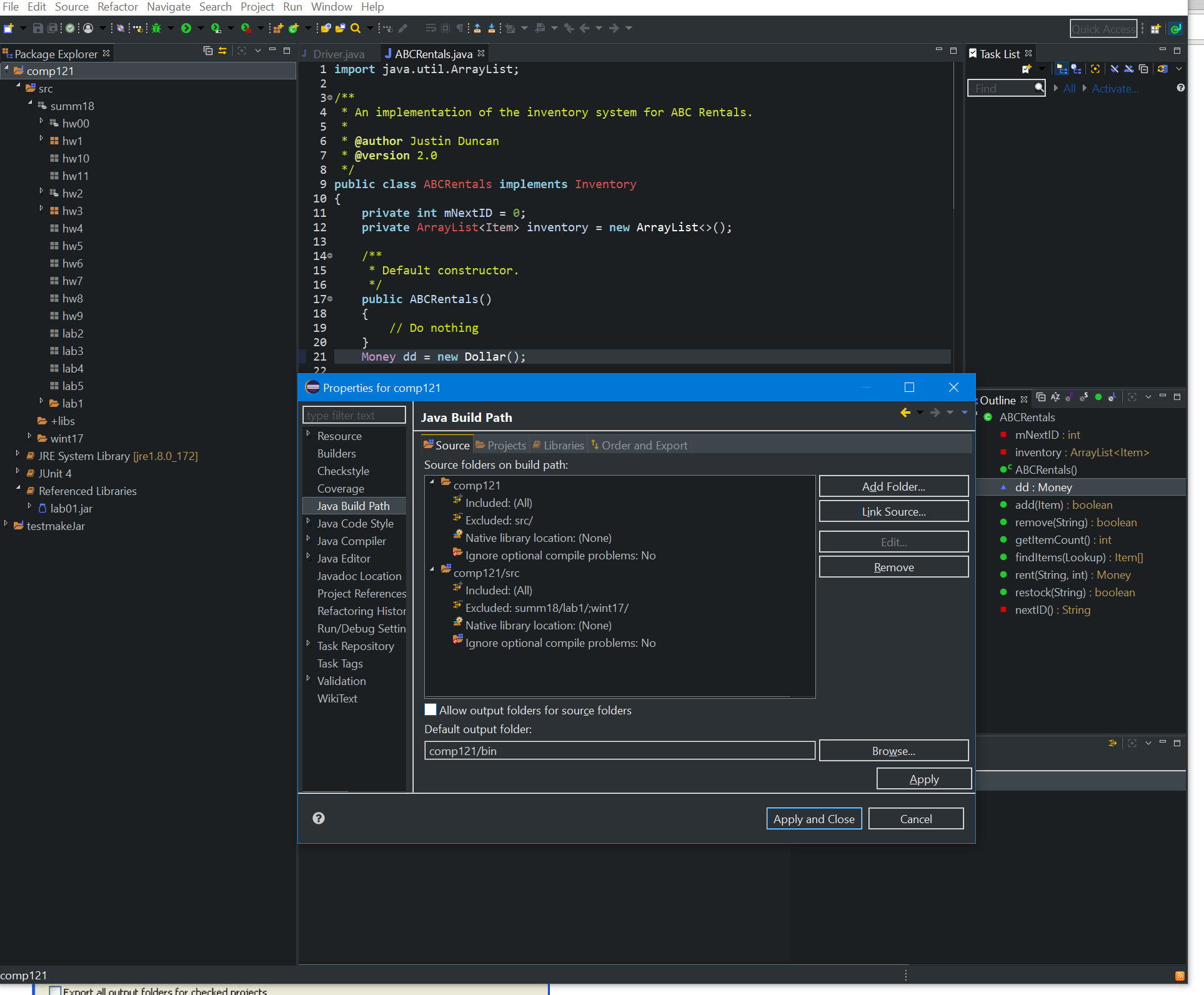 我不知道这是解决办法还是解决办法。为了使用包含默认包的jar文件,我必须将文件夹排除在构建路径之外。我确实知道如何解构/重构,但出于未来的原因,我不希望每次有人使用默认的pkg向我提交文件时都这样做。下面是一个工作设置的屏幕截图: