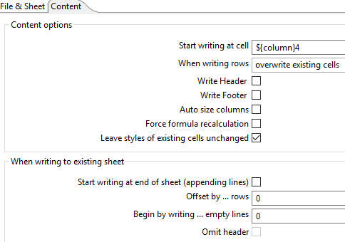 使用此配置,excel编写器将从${column}变量(C,后面跟着您需要的任何内容,这是您迭代的位置)开始,并覆盖单元格${column}4、${column}5等等。