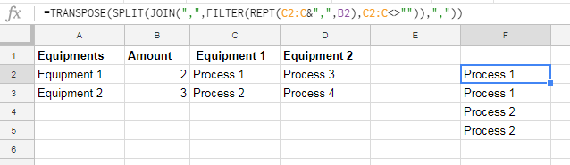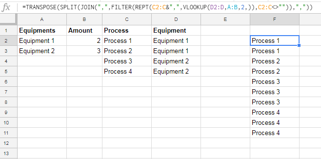 当然,我需要一个动态的公式(例如,可以添加其他设备或更改特定设备的流程)。