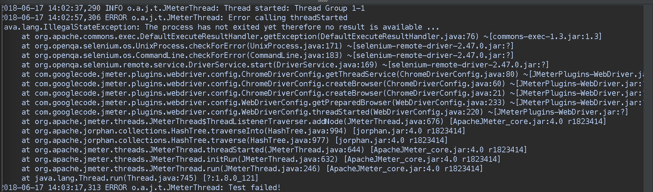WDS.sampleResuilt.setSuccessful(true)当我在jmeter采样器中运行这些脚本时,它会打开两次Chrome,而不键入url,并在log面板中抛出错误: