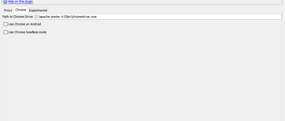 在JMeter中,给出色度驱动程序的路径,如下所示。