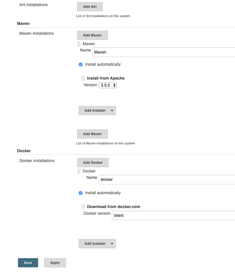 script returned exit code 127这在我看来很奇怪,因为在本地机器中可以获得对接器,而且还配置了Global Tool Configuration部分,并提供了如下所示的适当详细信息。我查看了几个帖子,但到目前为止,这些解决方案都没有奏效。