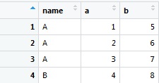 df <- data.frame(name,a,b)