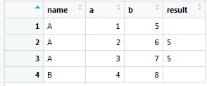# name a b result