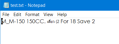 // notice the thai character เดี่ยว in the string M_M-150 150CC. เดี่ยว (2 For 18 Save 2)