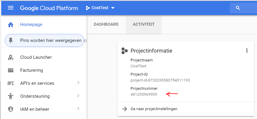 您可以通过转到开发人员控制台,选择连接到google分析帐户的项目来找到这个id。项目信息下应该有一个projectID