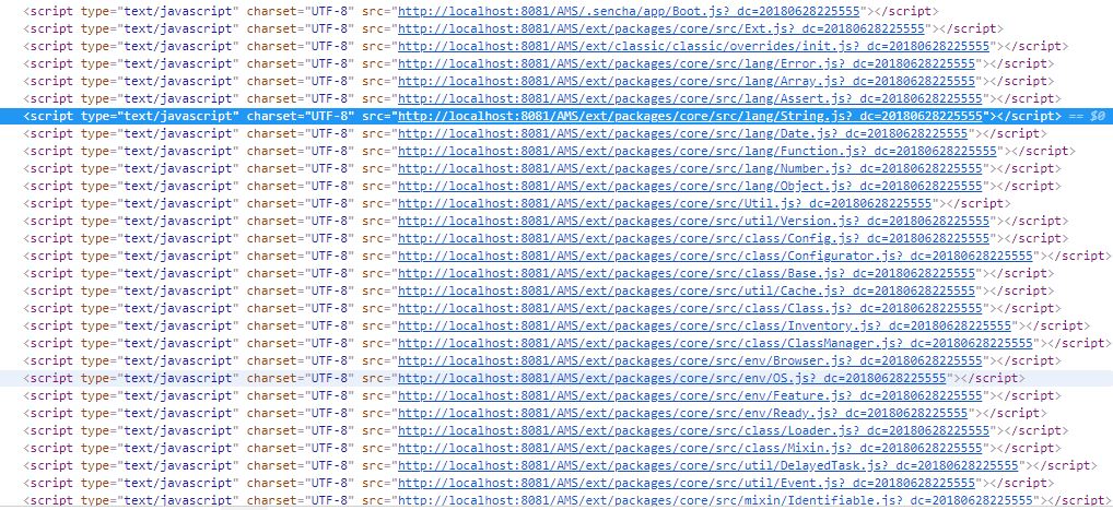 我试图使用sencha应用程序构建生产来构建我的应用程序,加载需要很长时间,然后当我打开索引页时,我看到了对910个JS文件的引用,它们都是纯文本。