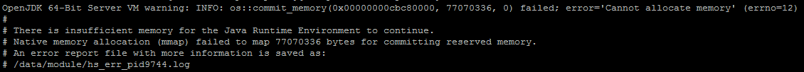 Linux上的行为似乎是试图在本机内存中分配一些大的东西(77 on ),而失败是因为操作系统拒绝给JVM足够多的内存。通常情况下,这是因为操作系统耗尽了资源;例如物理RAM、交换空间等等。