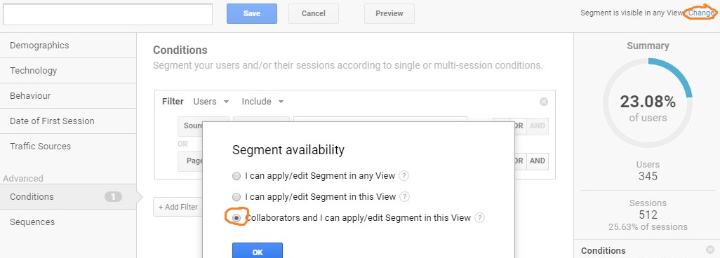 非常重要:如果您希望在service.management().segments()列表中显示自定义段,则需要编辑对协作者的区段可用性,我可以在此视图中应用/编辑区段。(如果不这样做,您只会通过API看到默认段,而不会看到自定义段!)。关于这个这里 (“设置段可用性”)和这里的更多信息。