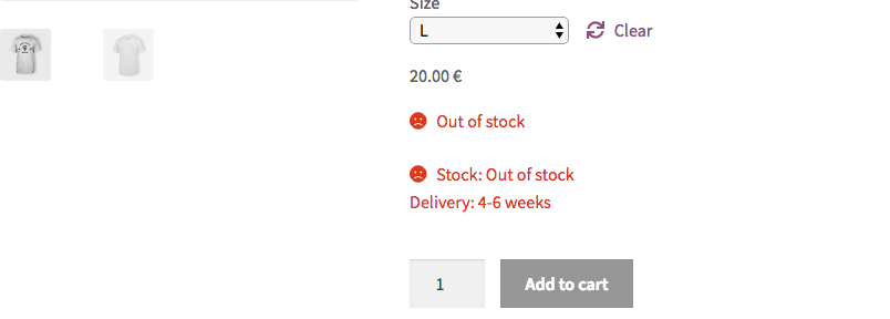 else $variation_data['text_field'] = __('<p class="stock in-stock">Stock: <span>Out of stock</span><br>Delivery: <span>4-6 weeks</span></p>');