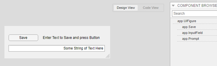 我们只输入一个fileName,它需要一个文件名作为字符串(您将在下面看到原因)。因此,添加输入并单击OK。然后我们被发送到startupFcn的“代码视图”。在这里,我们将编写解析输入文件的逻辑。对于我的简单示例应用程序,我将输入文件加载到结构中,然后将值发送到编辑字段: