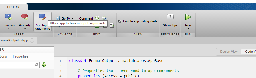 end我不知道appdesigner是什么时候添加了这个功能来“运行带有输入的应用程序”的,但是我在2018a中有了这个特性:
