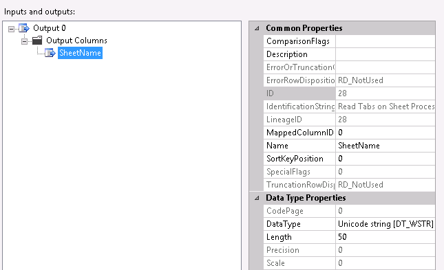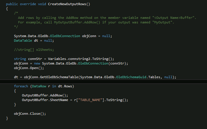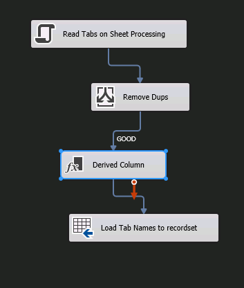 第一项是作为源的脚本组件。我有一个连接字符串到Excel电子表格的变量。