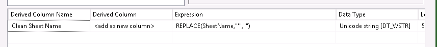 下一步是派生一个列,以清除exta“‘的工作表名。
