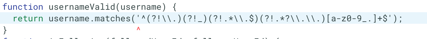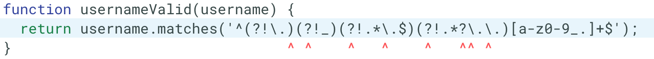 我的代码是username.matches('^(?!\.)(?!_)(?!.*\.$)(?!.*?\.\.)[a-z0-9_.]+$')