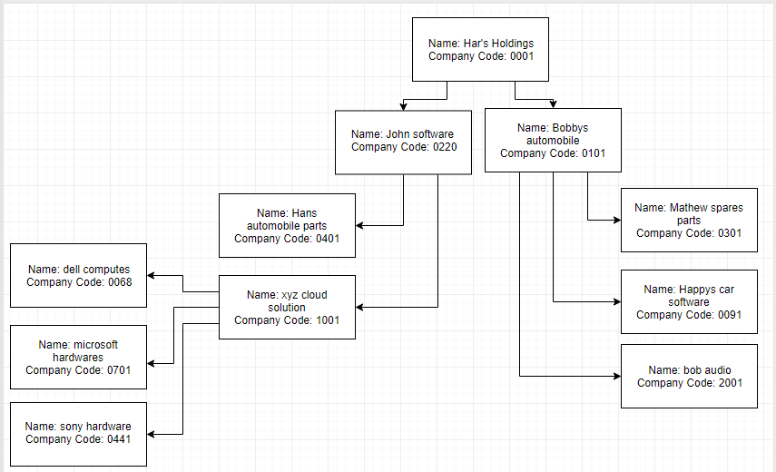 搜索名称字段:应该可以从所有级别搜索名称字段。例如,用户搜索汽车,它应该显示"Bobbys汽车“和"Hans汽车零部件”。