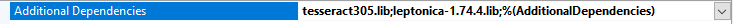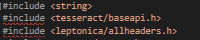使用tesseract OCR检测文本。成功安装tesseract之后,在附加依赖项中添加tesseract305.lib和liptonica-1.74.4.lib。使用以下代码(来自教程):