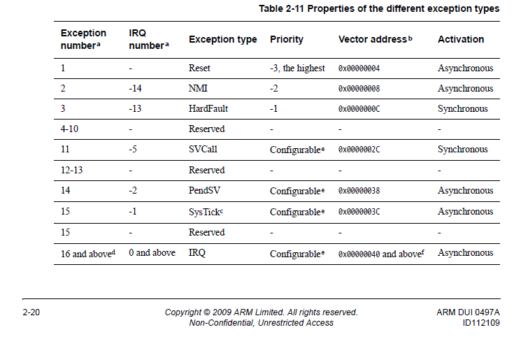 ARMv6 6-M架构参考手册指出( B1.5.1节“所支持的例外情况概述”):