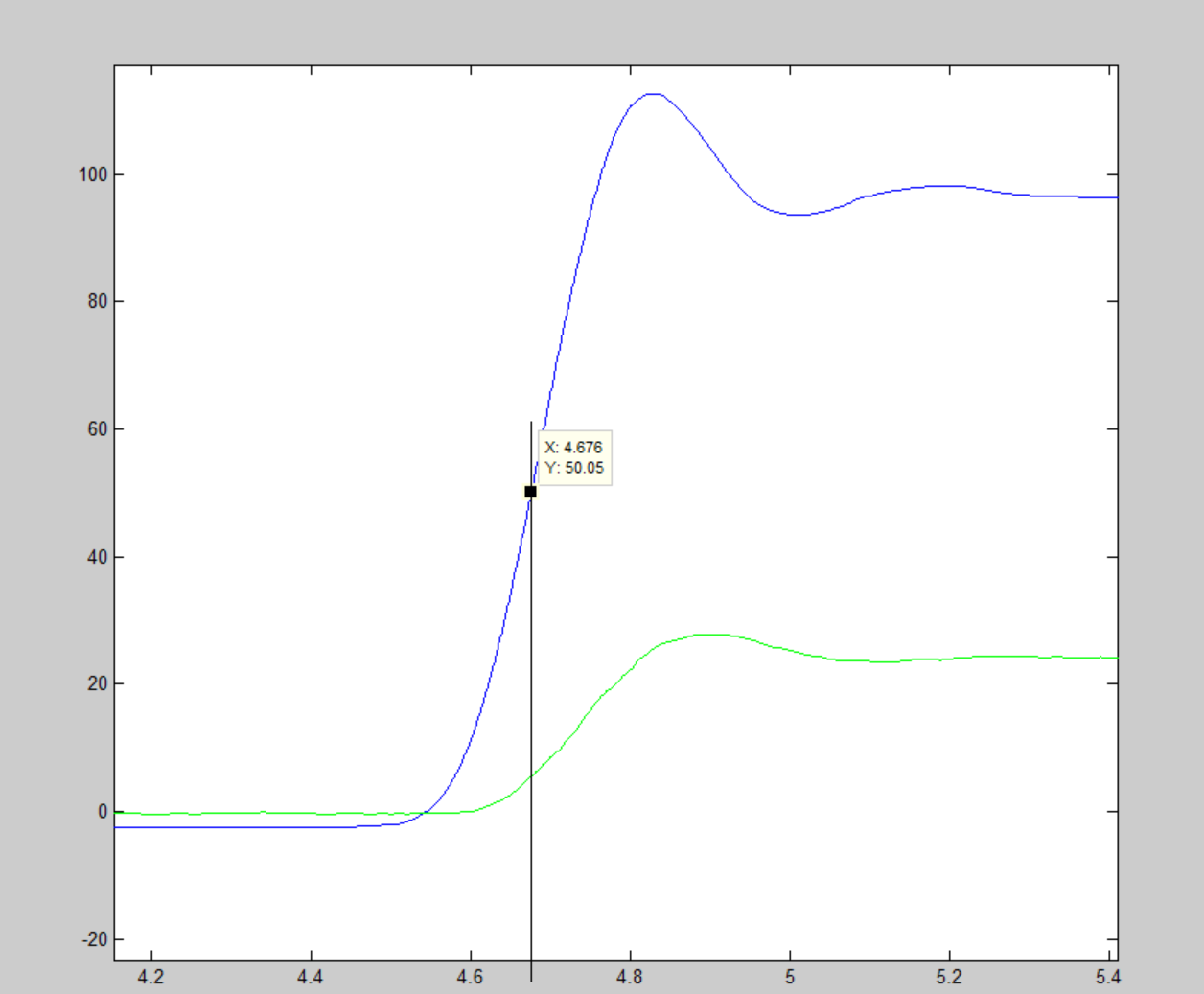 我有一个很简单的问题,但我找不到错误的地方。我在y轴上有两个信号,一个相同的x轴和两个信号值。我需要在黑线上找到绿色信号的y值,所以蓝色信号的y值是50.05。应该在6-7之间。我认为我应该首先得到相同的x值(4.676)。然后得到绿色信号的y值,其中x是4.676。所以我需要得到第一个4.676,但我不能得到给定y值的x。我试过了,但它总是空着的。