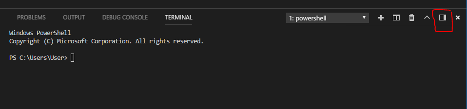 默认情况下,打开集成终端时,它水平地打开到编辑器的底部。
