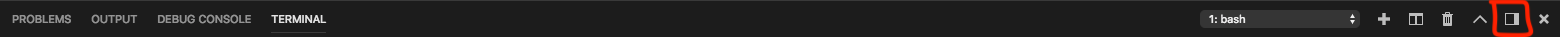 如何更改集成终端的默认位置,使其垂直对齐编辑器的右侧,例如单击“向右移动”按钮?
