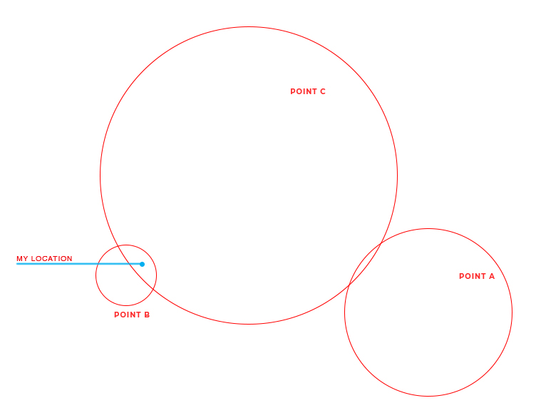 因此,如果点B和C在范围内,而B点是最近的,则应选择点B。