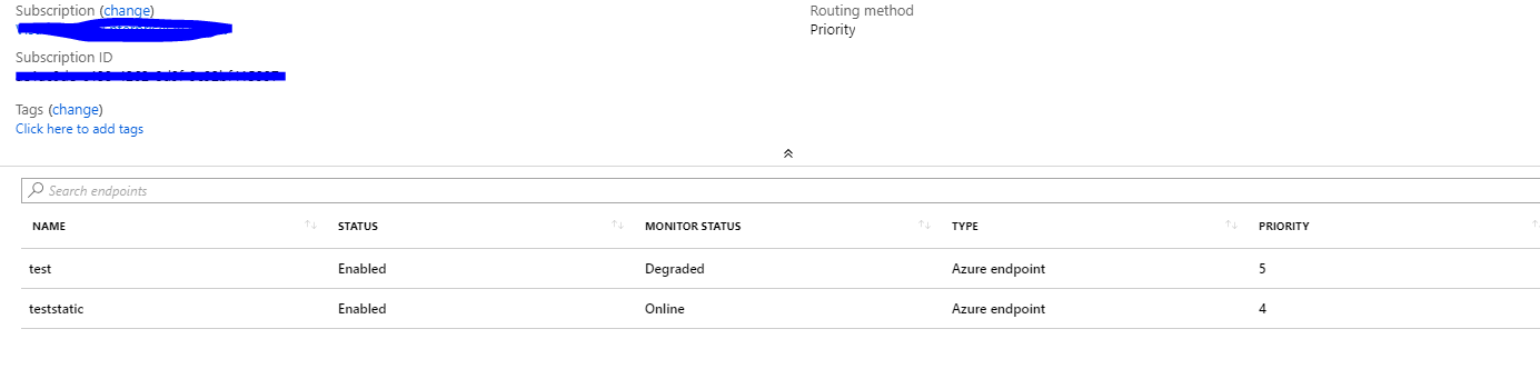 流量管理器根据每个端点的状态(未返回禁用端点)、每个端点的当前健康状况以及所选的流量路由方法选择端点。如果端点不可用,也就是说端点不包括DNS响应,或者是不健康的端点。但这方面的一个例外情况是,如果所有端点都降级了,那么所有端点都将被视为在查询响应中返回。您可以从端点监视器状态获得更多详细信息。
