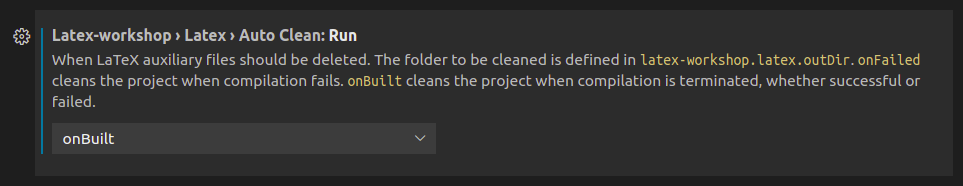 我见过这个类似的问题的答案,建议使用latexmk -c或pdflatex -aux-directory=/some/temp/dir <additional options>。我更喜欢后者,因为您可以创建一个子目录,而不必重复地删除和生成文件。当前,此选项“仅在MiKTeX版本的(Pdf)胶乳上实现”。另一方面,前一种办法似乎不能正常运作。我在Visual代码中使用LaTeX讲习班,默认情况下它使用latexmk。为了添加-c标志,我创建了以下接收程序: