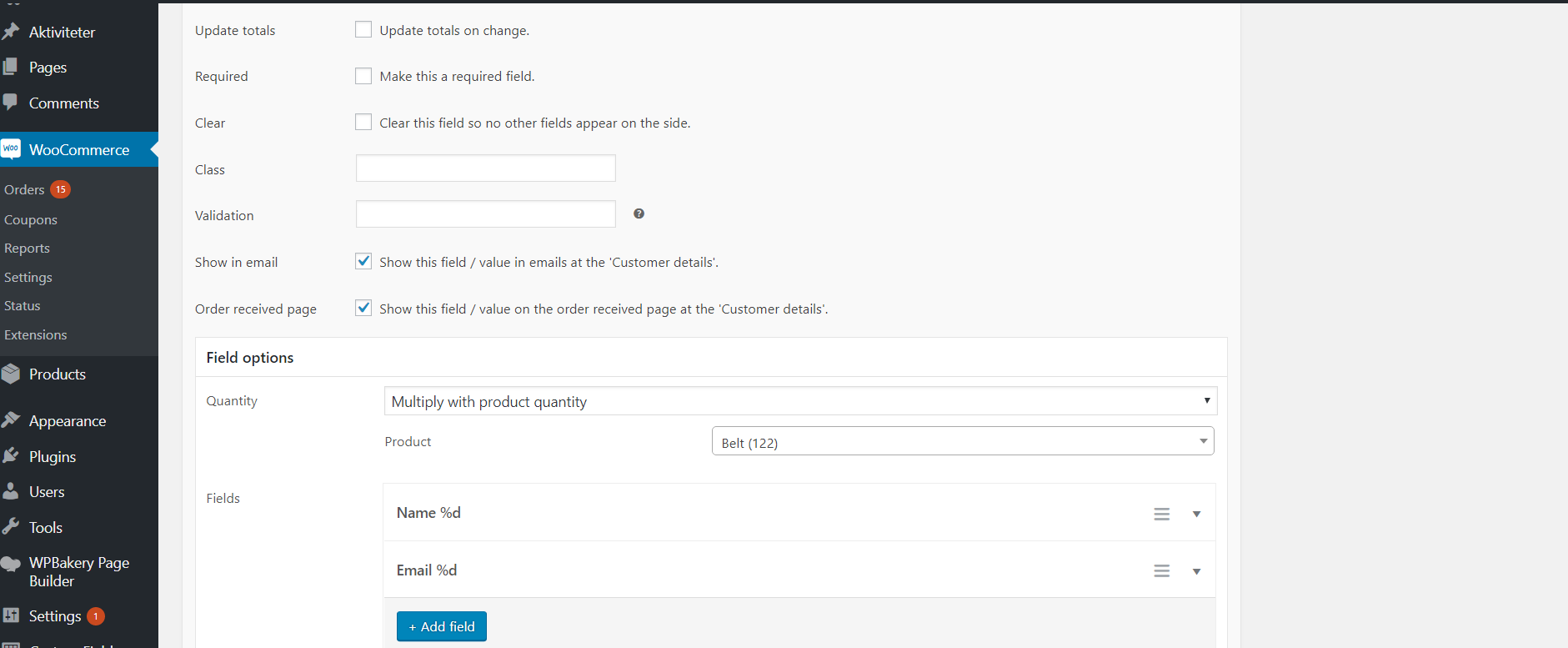 我正在使用woocommerce-高级结帐字段插件,并向计费部分添加了一个中继器字段,如下所示