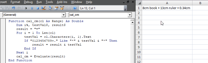 8厘米书+ 13厘米尺+ 0.34厘米纸,然后我如何把8+13+0.34加在细胞内,然后= 21.34cm