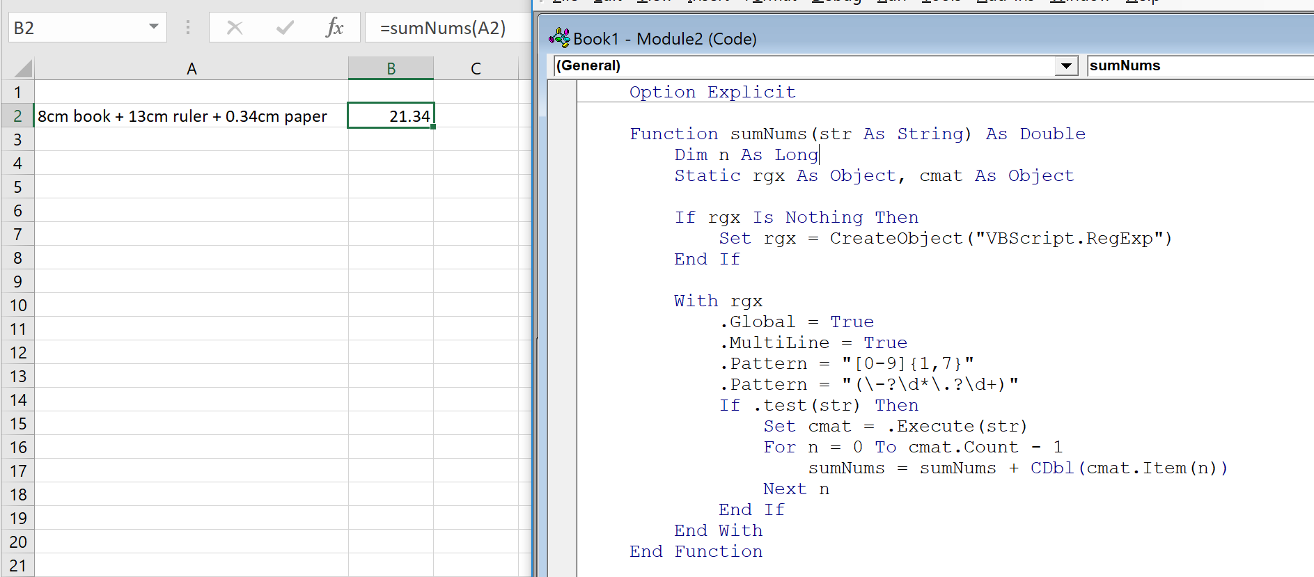 sumNums = sumNums + CDbl(cmat.Item(n))