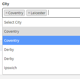 });我在下拉列表中得到了正确的选定值,但是列表中的值是重复的。