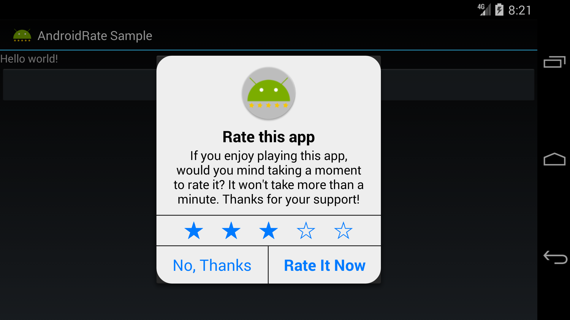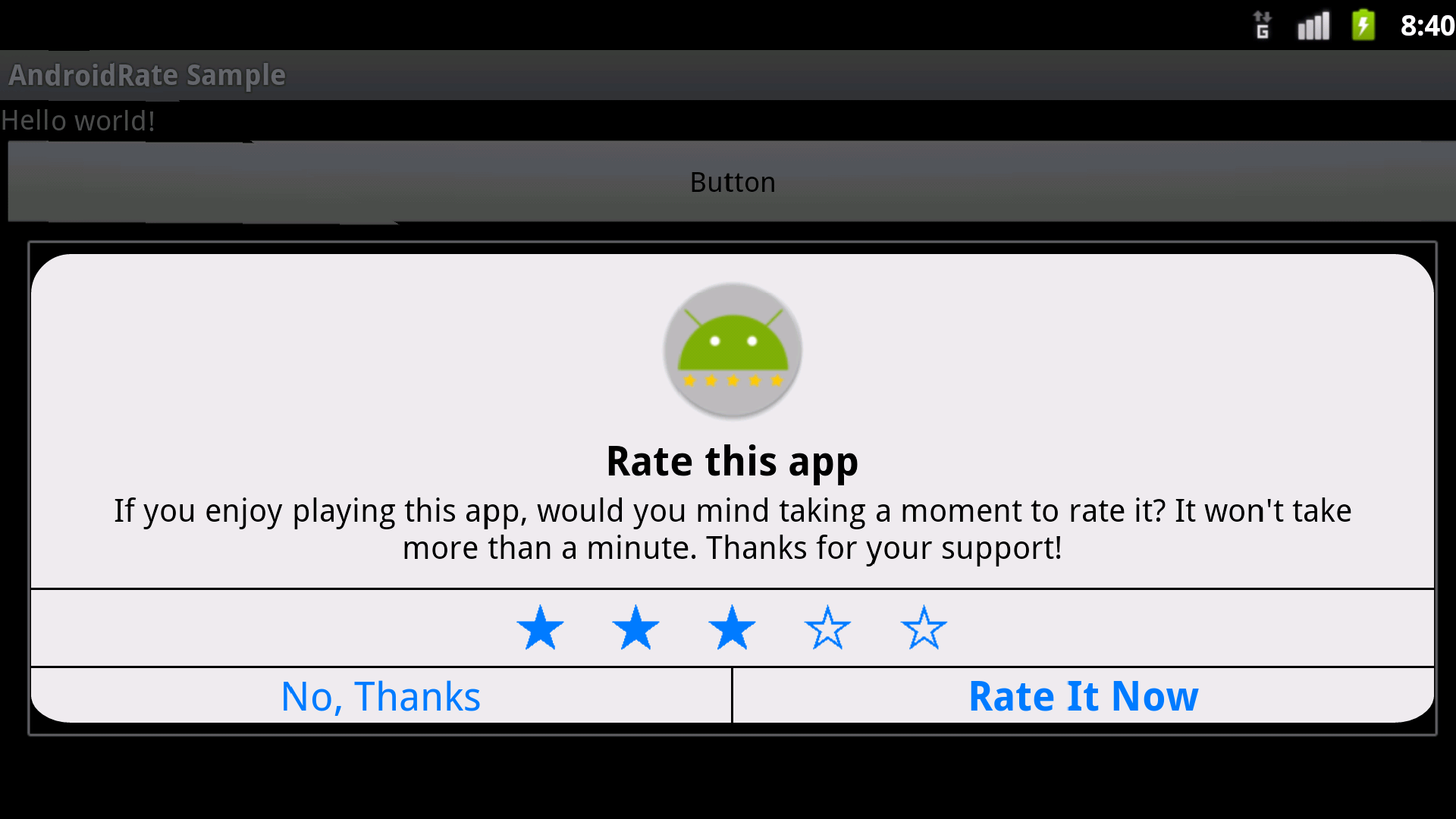 我正在研究苹果风格的AlertDialog AndroidRate库功能,无法修复安卓9-10 API上的一些bug。